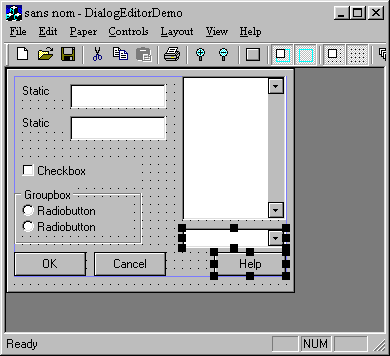 DialogEditorDemo is a SDI doc/view application showing how to use the separate data container class, how to plug into the document loading and saving, and using a factory to create the drawing objects, how to add print and print preview, custom background redraw, exporting, and much, much more.